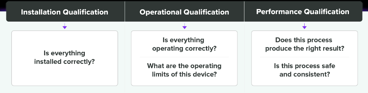 Although IQ, OQ, and PQ are closely related, each serves a distinct purpose: