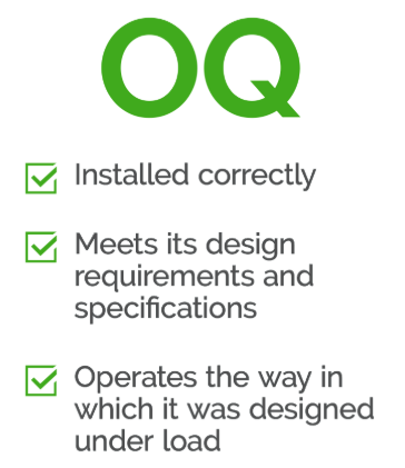 - OQ confirms that processes operate reliably within defined limits
